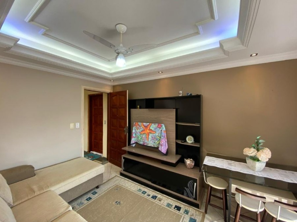 APARTAMENTO COM 01 DORMITÓRIO, 1 BANHEIROS SOCIAL, SALA, COZINHA, ÁREA DE SERVIÇO, SALÃO DE FESTA E 01 VAGA DE GARAGEM COM ÓTIMO ESPAÇO.